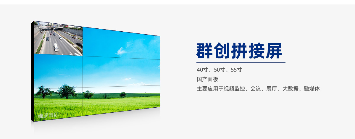 群创液晶面板是中国台湾地区的液晶面板生产商,主要供应各种液晶显示屏幕,40寸液晶拼接屏是其中的一种,除此之外,还包括50寸和55寸系列,近几年逐渐被引入到国内的工业级显示市场。