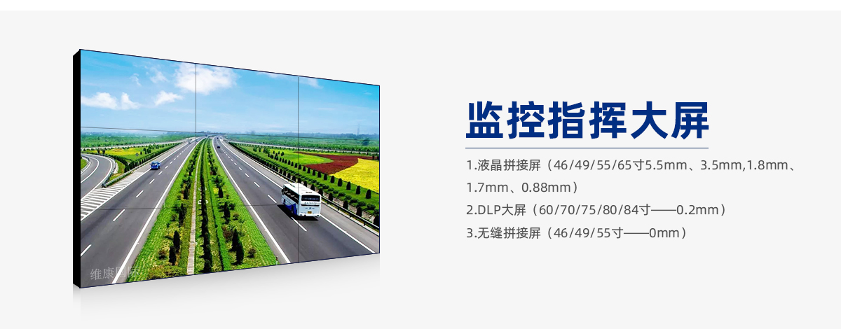 拼缝是LCD监控中心大屏系统产品中一个非常重要的参数,但是它对于监控中心显示图像的影响并不大,因为大多数情况下监控图像都是分割显示的,很少用到跨屏与全屏显示,所以像常规的3.5毫米拼缝的LCD屏完全可以满足监控显示的要求。
