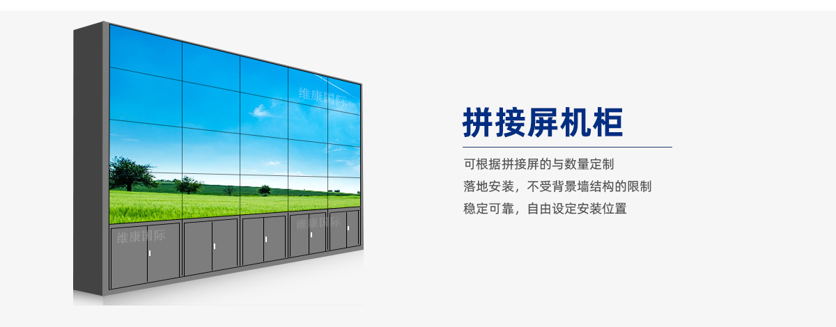 拼接屏机柜是当下使用的非常普遍的一种安装方式,原因是它可以独立地立在地面上,不再要求背景墙的结构,只需要根据安装房间的高度与宽度以及拼接屏的数量来定制拼接屏机柜的尺寸即可,广泛使用在付室、监控室等拼接屏应用领域。