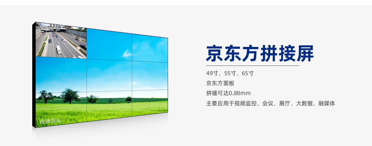 京东方拼接屏55寸以高性价比著称,价格便宜,在室内的监控室、指挥中心、会议显示等场合都有广泛的使用。