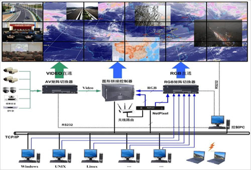 室内的拼接屏技术方案如何设计,在一些监控显示系统或者会议显示系统中,拼接屏凭借着高清显示的优势以及更加柔和的亮度与色彩成为了主要使用的一种大屏设备,然而关于拼接屏方案也会根据不同的用途、不同的应用场合而单独进行设计,所以并没有一个统一标准的方案。比如我们用于监控显示的方案与用于会议显示的方案是完全不同的两种硬件配置方案,特别是涉及到中控系统及信号的切换。即使是用途一样,但是由于电脑等信号源的数量不同,拼接屏技术方案的组成也是不同的。一般情况下,我们首先都要