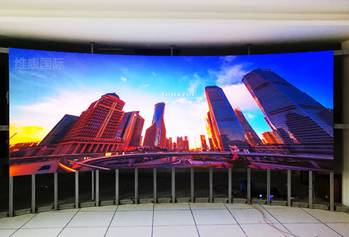 弧形大屏幕显示是当下许多场合应用到的一种显示方式,把大屏幕设计成一个内弧形或者外弧形与所安装的环境相匹配,在达到更加个性化的显示效果的同时实现与现场的完美融合,那么这种弧形大屏幕是怎么做成的呢,有几种方案呢。其实弧形大屏幕大多数情况下都是通过传统的屏幕拼接而成的,有液晶拼接屏、LED显示屏两种可以实现弧形,另外LED显示屏还有软模组的,也就是单元板就是柔性的,拼接起来更加容易,其次还有一种OLED柔性屏,本身可以做成可弯曲的,不过由于价格较高目前使用的不多