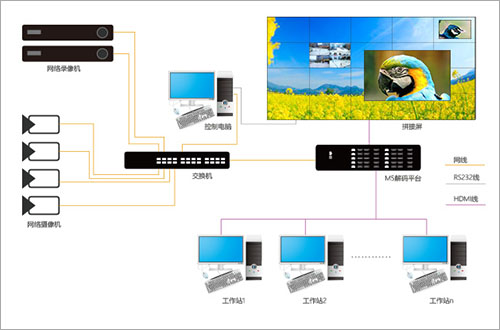 一个完整的拼接大屏系统由多个部分组成,其同完成输入与输出及显示功能,广泛应用在视频监控显示、指挥调度、会议、展览展示等领域。通常来说拼接大屏系统的组成除了显示屏幕以外,还包括中控系统,解码平台,输入信号源等四大部分。一、显示部分承担着最终的显示工作,通常使用液晶拼接屏或者DLP拼接屏、LED显示屏等三种,每种产品对应的显示效果也存在较大差异,使用哪一种还要根据我们的用途以及显示功能选择。比如液晶拼接屏的特点是高清、色彩丰富、性价比高,特别是像0.88mm拼