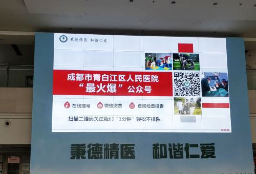 作为四川生产拼接屏的厂家,我公司已经在四川地区安装了多组大屏案例,最近的一组就是应用于成都市青白江区人民医院,采用的是6*6拼接,共36块55寸拼接屏,安装在医院门诊大厅的背景墙上,主要用于显示一些医院的相关信息,作为展示宣传使用。 由于拼接屏的数量较多,同时还要壁挂在二层的位置,所以在安装中我公司针对这一特殊环境进行了详细的方案设计,比如对立柱的承重、支架的厚度等都进行了精细地测量,因为要保证拼接屏在挂上后立柱不会弯曲,同时由于要保证整体的厚度