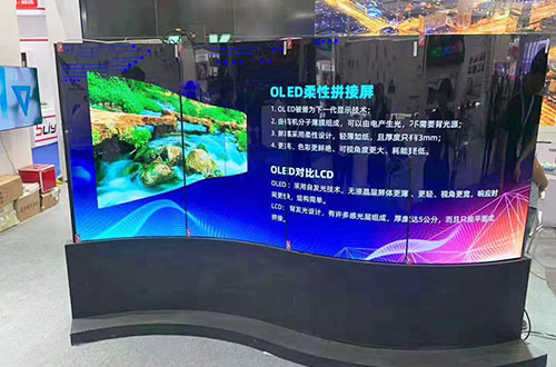 最近,我公司推出了一款oled拼接屏显示技术,一改液晶拼接屏背发光的特点,直接采用自发光拼接成一个大屏幕显示,并且可以任意弯曲,拼接成弧形、圆形等效果。那么oled拼接屏是一种什么技术呢?它与液晶拼接屏的区别主要有哪些?一、oled拼接屏技术讲解Oled显示技术其它早就被应用在了显示屏幕中,像手机屏、电视屏都有使用,只不过由于成本问题一直没有应用在工业大屏拼接显示中。而近几年随着更多应用群体对个性化大屏产品的需求不断上升,oled拼接屏也被我公司推出。它是