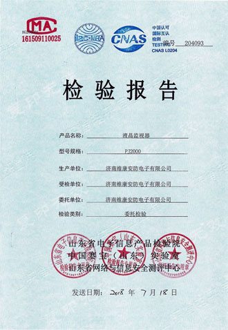 公安部检测报告是对国内电子产品的指定认证机构,所有的电子产品在出厂前除了要取得CCC强制认证以外,还需要取得这一检测,只有通过这一检测的产品才是符合出厂标准的,在大屏领域也是如此。维康国际作为14年大屏生产企业,早于2014年就取得了这一认证。 检测报告是由国家安全防范报警系统产品质量监督检测中心与公安部安全与警用电子产品质量检测中心同时颁发,整个检测过程通过抽样的形式,对厂家提供的某一个尺寸或者类型的产品进行专业检测。在液晶拼接屏品类中,常规检