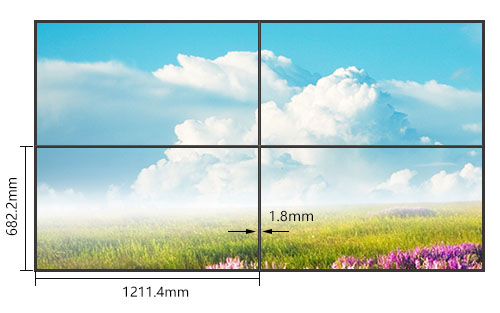 2018年末,LG宣布量产0.88mm液晶面板,接着我公司也推出0.88mm液晶拼接屏整机产品,这也标志着高清大屏显示真正地迎来了超窄边时代。在此以前,行业最窄拼缝的液晶拼接屏是三星面板的46和55寸产品,主要以高端的会议与大数据显示为主要应用领域,这次,0.88mm拼缝的产品直接把拼缝再次下降一倍,主要也是看到了这一部分应用群体的发展空间。一、0.88mm液晶拼接屏简介0.88mm液晶拼接屏目前只提供一种55寸,产品尺寸与1.8mm的面板相当,宽为121