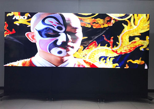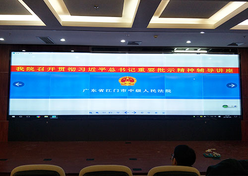 无缝拼接屏是当前液晶大屏显示领域的高端产品,自推出以来基本上都是应用于高端的视频会议、会议报告厅、大数据显示等平台当中,其显示效果也得到了大多数用户的认可,那么,无缝拼接屏真的可以达到0mm拼接吗?答案是肯定的,维康国际推出的55寸无缝拼接屏实现了0mm拼接,通过LED光源补偿技术实现对原有拼缝的消隐,这样原来的边框就被LED光源所还原出来,不管是从正面还是侧面都看不到物理黑边,显示效果如下图。 广东江门中级人民法院真实安装案例由于整个显示行业只