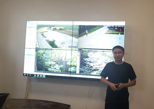 7.21日,由我公司提供的4块46寸5.5mm拼接屏安装完成,安装地点是东阿镇政府监控室,由四块拼接屏组成,通过壁挂的方式安装在墙上,形成了一个最基础的拼接显示系统,由于镇政府的监控点数量不多,所以四块拼接屏足以达到使用要求,因为每块屏幕最多可以分割32路监控图像,所以四块屏最多可同时显示一百多路监控信号。此次所使用的46寸5.5mm拼接屏是监控显示场合的主力产品,主要原因是因为两个方面,一是46寸5.5mm拼接屏尺寸小、拼缝宽,尺寸小就预示着所使用的面板