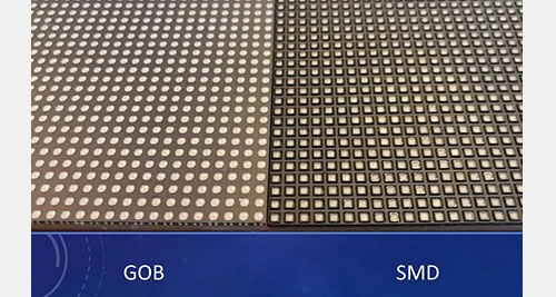 GOB显示屏指的是采用GOB封装的一种LED显示屏,所谓GOB是一种新型的LED封装技术,它的采用的是一种特殊的光学导热纳米级灌胶材料,将常规的LED显示屏PCB板上灯珠与灯珠之间的空隙进行填充,增强了LED灯珠的稳定性,GOB显示屏很好地解决了LED显示屏容易死灯、掉灯的问题。目前大部分LED显示屏都是采用的SMD封装,也叫表贴式封装,这种封装技术成熟,应用非常广泛,但是它的缺点是容易掉灯、死灯,导致售后率比较高,原因就是它在是先把LED芯片封装成灯珠,