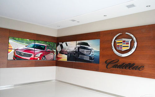 在一些汽车4S店的售车大厅内,通常也会安装一组宣传展示大屏用来播放某些重点车型的宣传片等,这个屏幕一般也不会太大,通常都在100多寸,只不过要根据安装区域的位置及形状,可能宣传展示大屏的样式会不同,有的是竖屏,有的是横屏,那么这种大屏用什么样的呢?一般情况下,4S店的售车大厅都比较大,通常会有几百平米,所以用电视就太小了,而如果是用LED显示屏的话,分辨率就太低,近看效果不好,会感觉不清晰,那么对于汽车的宣传效果就会大打折扣。所以这就要求宣传展示大屏必须达